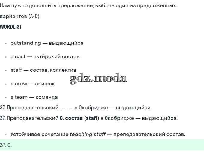 ГДЗ решение к заданию № 37 Английский язык 10 класс рабочая тетрадь Starlight Баранова К.М. Просвещение 2021 Углубленный уровень ФГОС бесплатно на гдз.мода!