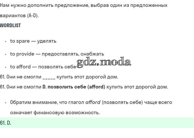 ГДЗ решение к заданию № 61 Английский язык 10 класс рабочая тетрадь Starlight Баранова К.М. Просвещение 2021 Углубленный уровень ФГОС бесплатно на гдз.мода!