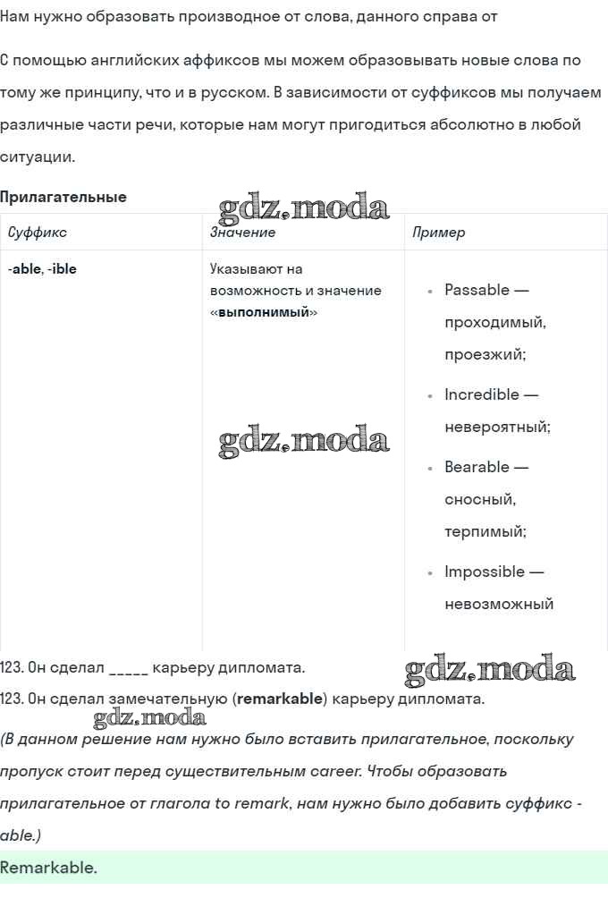 ГДЗ решение к заданию № 123 Английский язык 10 класс рабочая тетрадь Starlight Баранова К.М. Просвещение 2021 Углубленный уровень ФГОС бесплатно на гдз.мода!