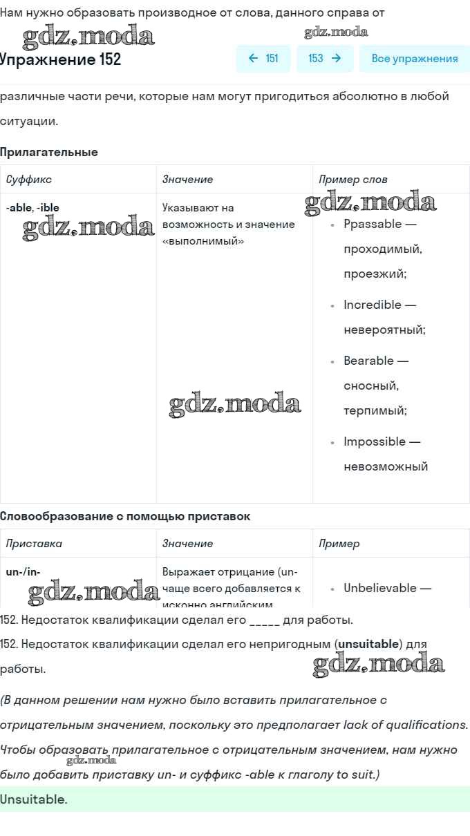 ГДЗ решение к заданию № 152 Английский язык 10 класс рабочая тетрадь Starlight Баранова К.М. Просвещение 2021 Углубленный уровень ФГОС бесплатно на гдз.мода!