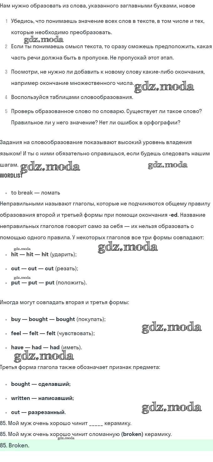 ГДЗ решение к заданию № 85 Английский язык 10 класс рабочая тетрадь Starlight Баранова К.М. Просвещение 2021 Углубленный уровень ФГОС бесплатно на гдз.мода!