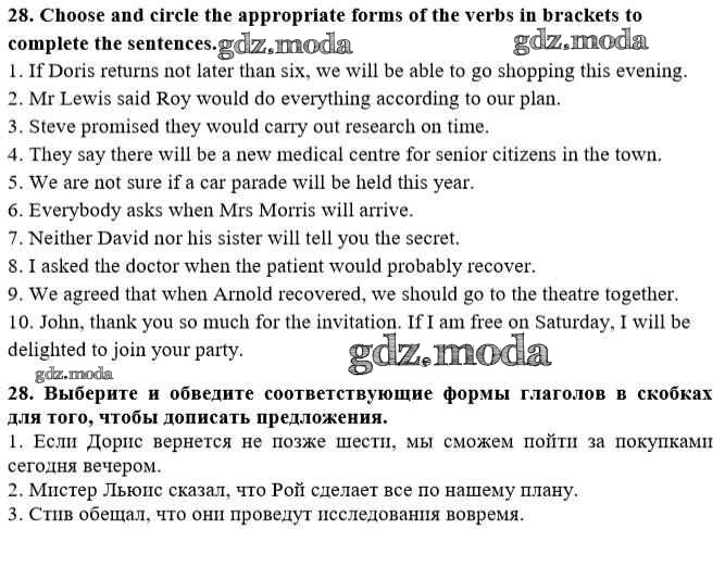 ГДЗ решение к заданию № 28 Английский язык 10 класс рабочая тетрадь Rainbow Афанасьева О.В. Дрофа 2016 ФГОС бесплатно на гдз.мода!