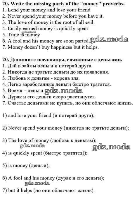 ГДЗ решение к заданию № 20 Английский язык 10 класс рабочая тетрадь Rainbow Афанасьева О.В. Дрофа 2016 ФГОС бесплатно на гдз.мода!