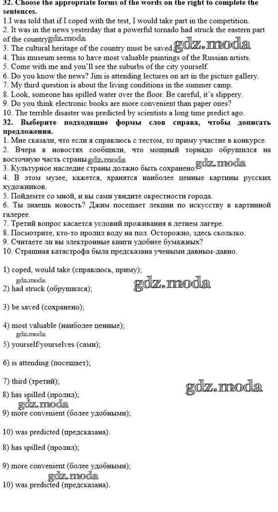 ГДЗ решение к заданию № 32 Английский язык 10 класс рабочая тетрадь Rainbow Афанасьева О.В. Дрофа 2016 ФГОС бесплатно на гдз.мода!