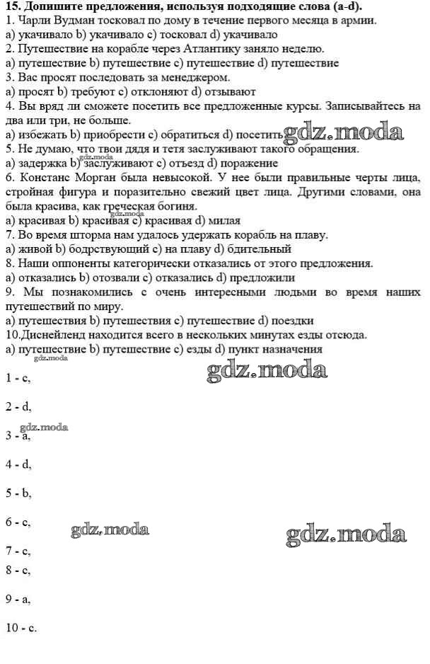 ГДЗ решение к заданию № 15 Английский язык 10 класс рабочая тетрадь Rainbow Афанасьева О.В. Дрофа 2016 ФГОС бесплатно на гдз.мода!