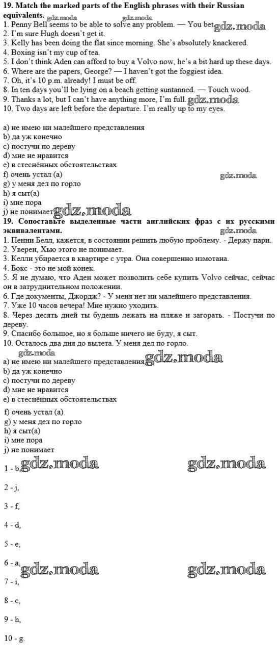 ГДЗ решение к заданию № 19 Английский язык 10 класс рабочая тетрадь Rainbow Афанасьева О.В. Дрофа 2016 ФГОС бесплатно на гдз.мода!