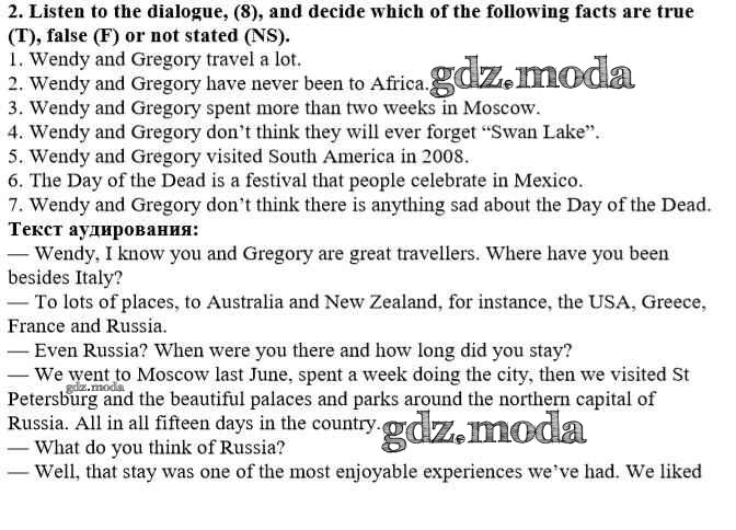 ГДЗ решение к заданию № 2 Английский язык 10 класс рабочая тетрадь Rainbow Афанасьева О.В. Дрофа 2016 ФГОС бесплатно на гдз.мода!