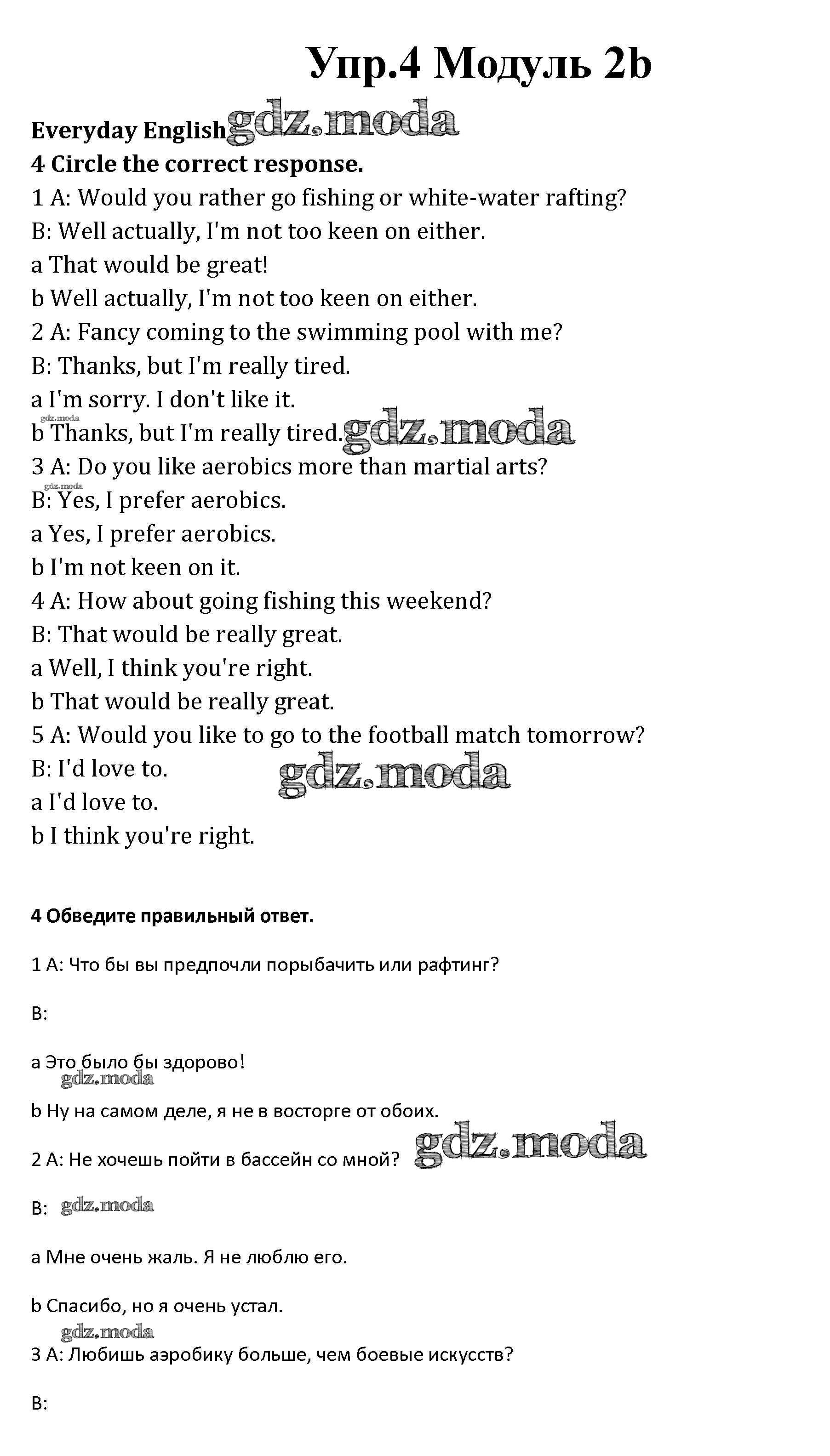 ГДЗ решение к заданию № 4 Английский язык 10 класс рабочая тетрадь Spotlight Афанасьева О.В. Просвещение 2015 Базовый уровень ФГОС бесплатно на гдз.мода!