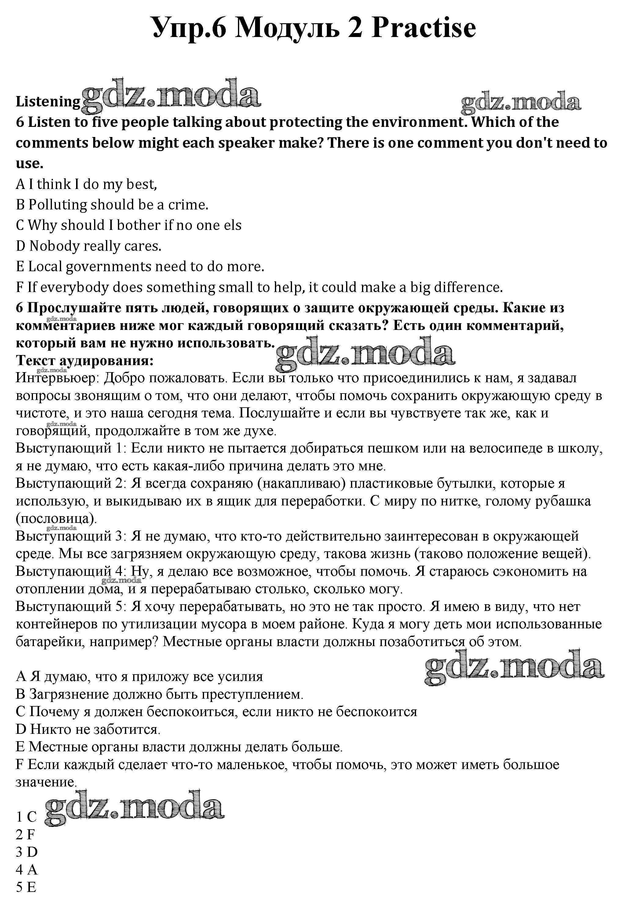 ГДЗ решение к заданию № 6 Английский язык 10 класс рабочая тетрадь Spotlight Афанасьева О.В. Просвещение 2015 Базовый уровень ФГОС бесплатно на гдз.мода!