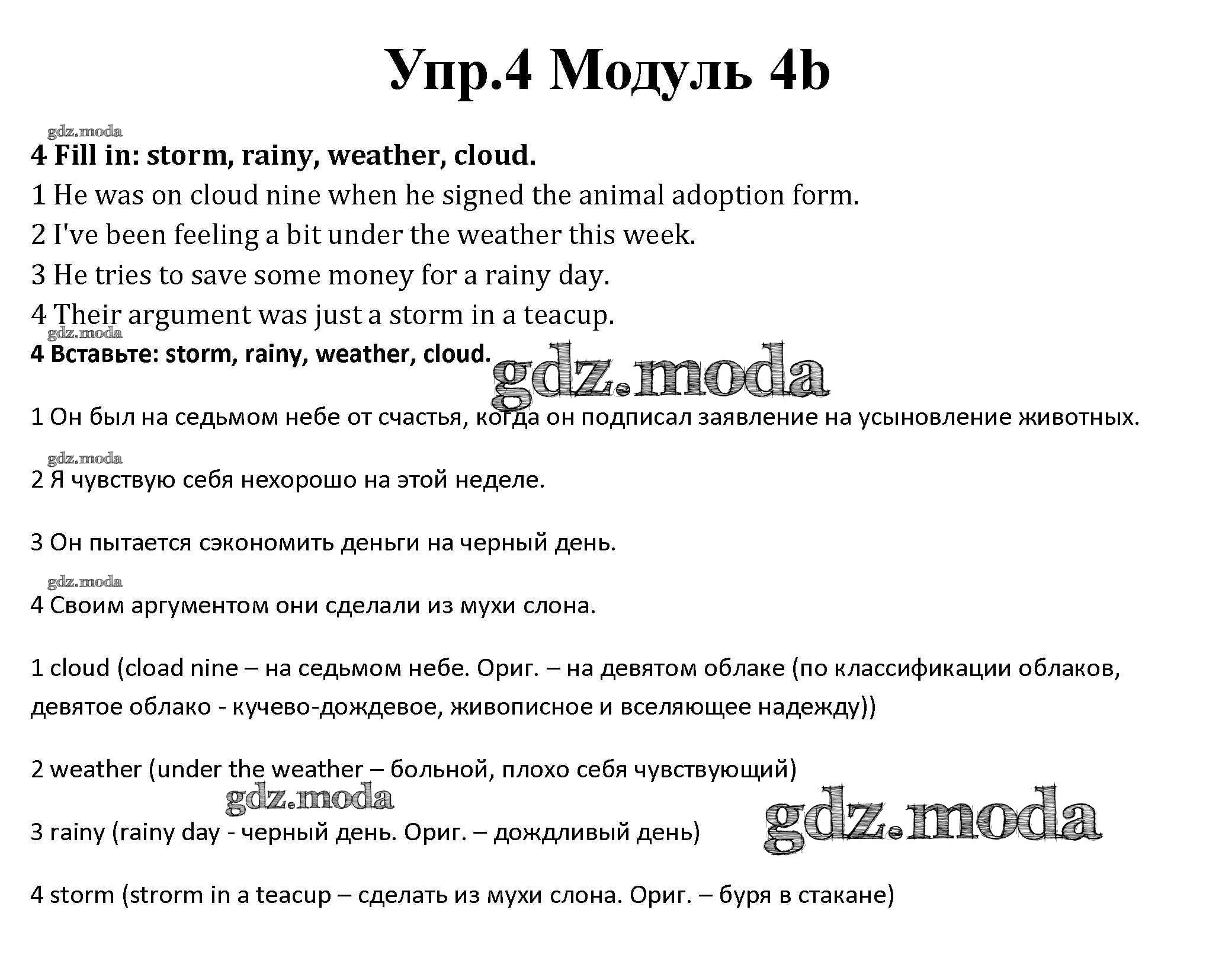 ГДЗ решение к заданию № 4 Английский язык 10 класс рабочая тетрадь Spotlight Афанасьева О.В. Просвещение 2015 Базовый уровень ФГОС бесплатно на гдз.мода!