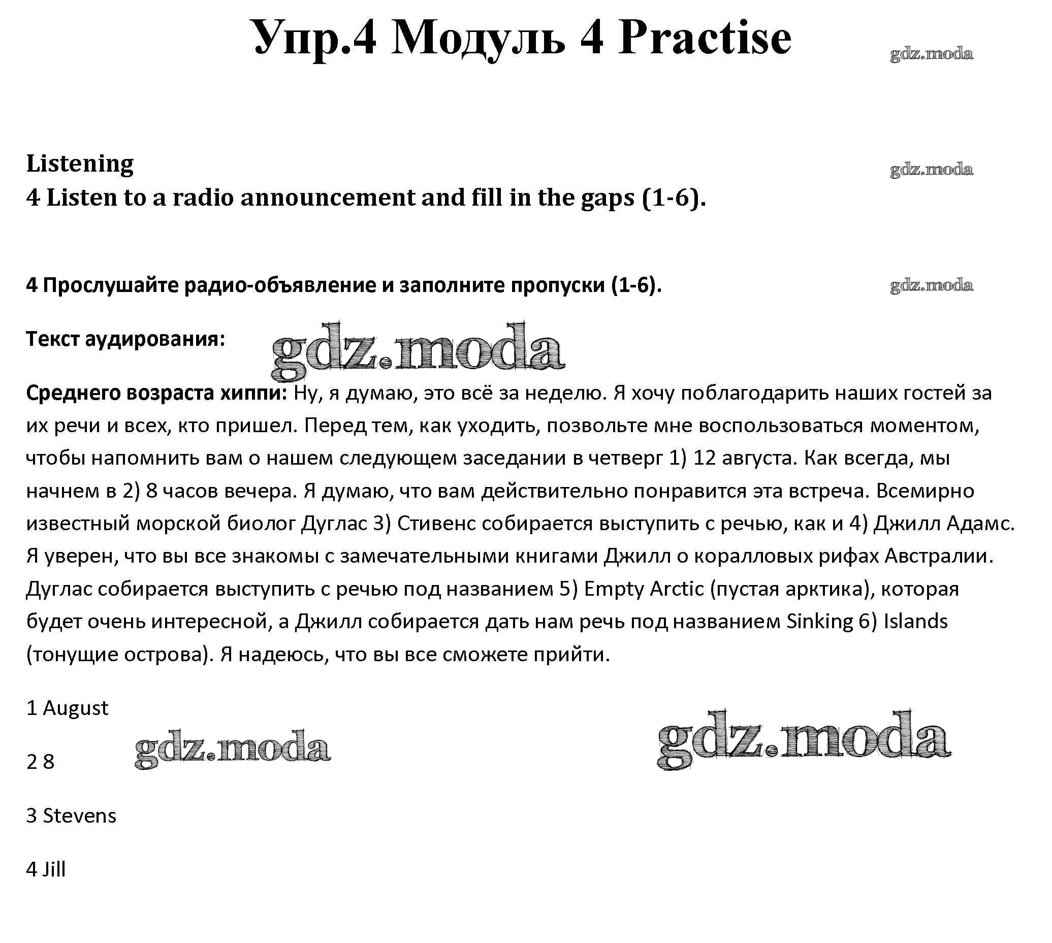 ГДЗ решение к заданию № 4 Английский язык 10 класс рабочая тетрадь Spotlight Афанасьева О.В. Просвещение 2015 Базовый уровень ФГОС бесплатно на гдз.мода!