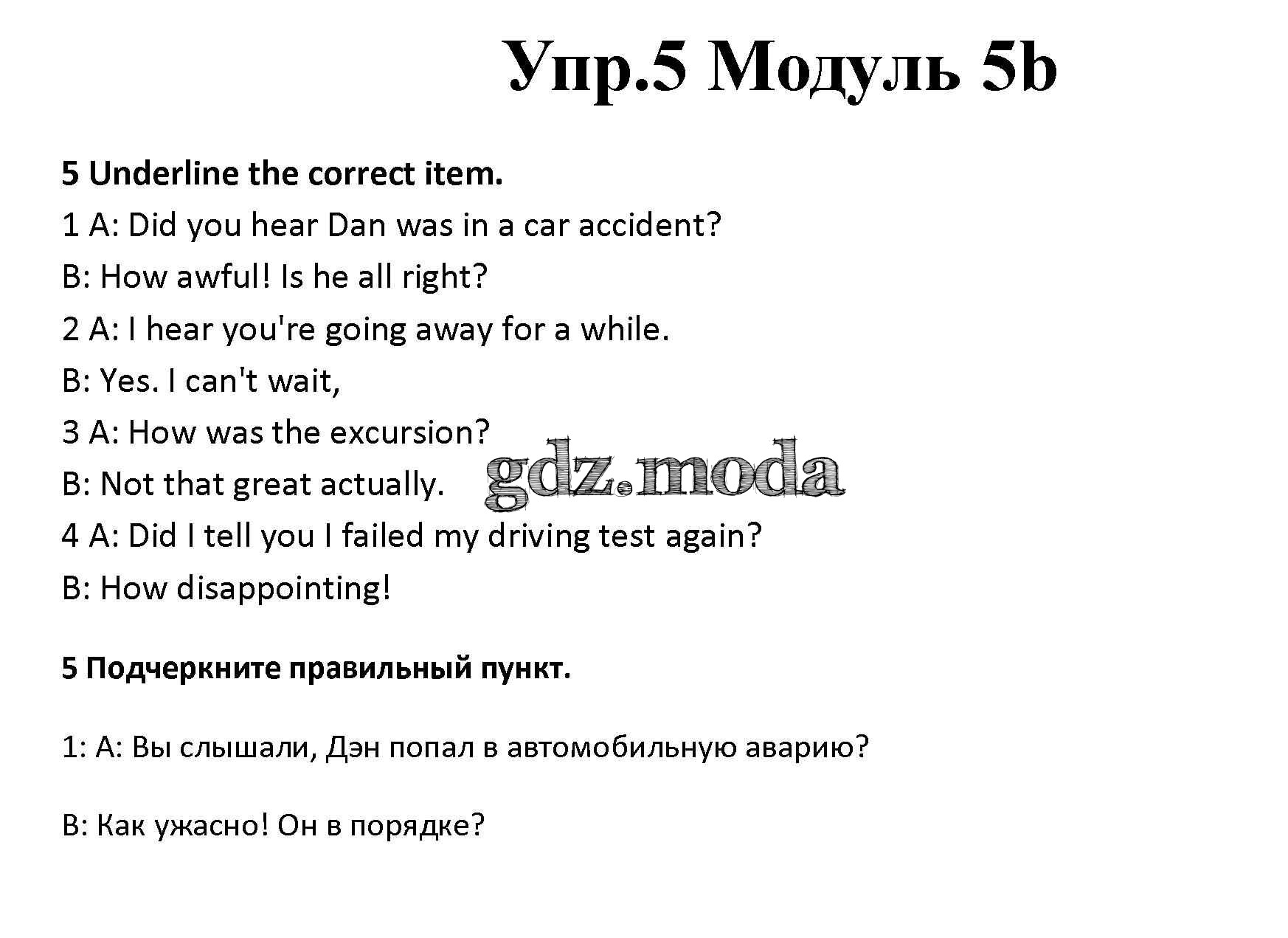 ГДЗ решение к заданию № 5 Английский язык 10 класс рабочая тетрадь Spotlight Афанасьева О.В. Просвещение 2015 Базовый уровень ФГОС бесплатно на гдз.мода!