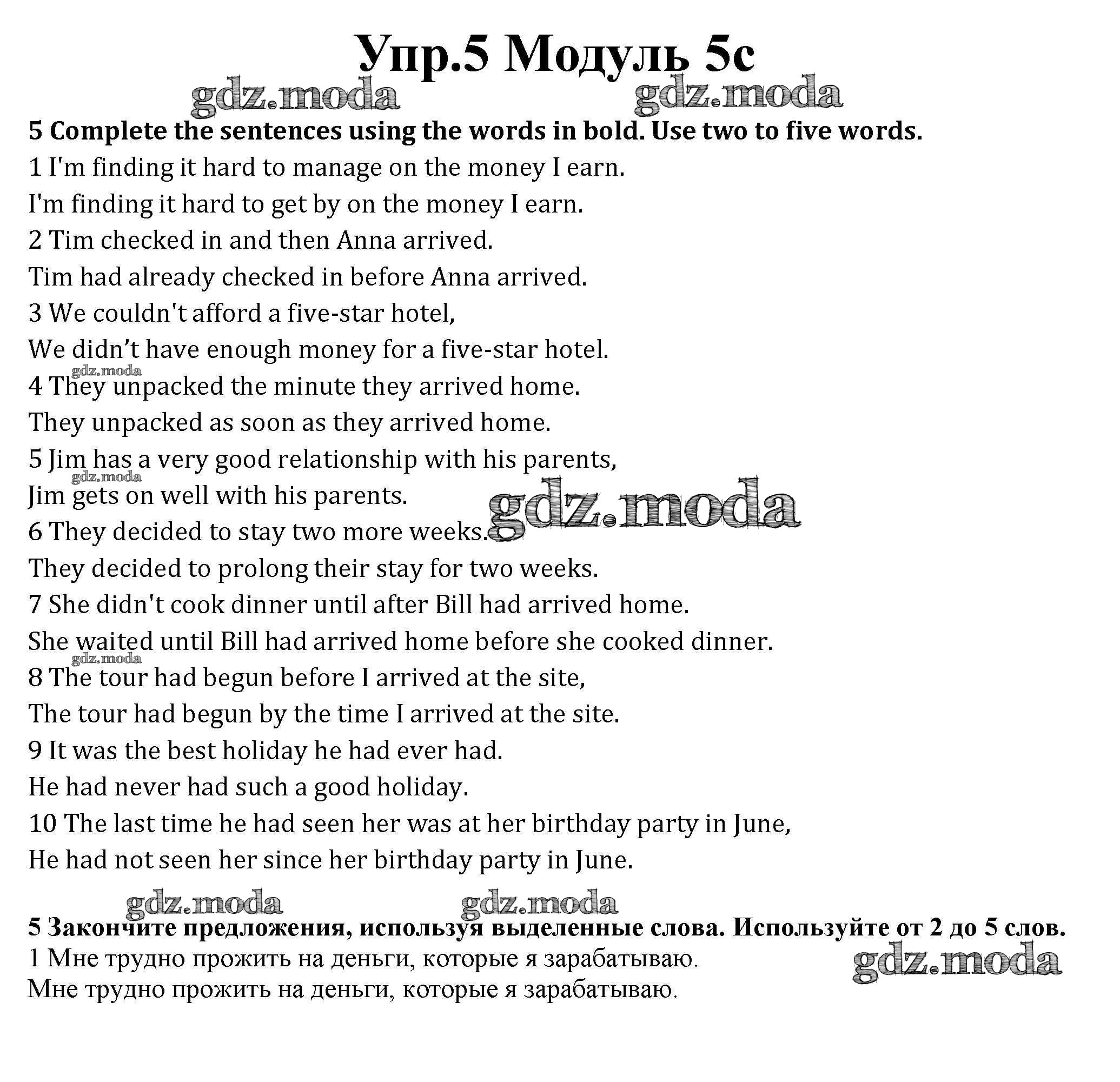ГДЗ решение к заданию № 5 Английский язык 10 класс рабочая тетрадь Spotlight Афанасьева О.В. Просвещение 2015 Базовый уровень ФГОС бесплатно на гдз.мода!