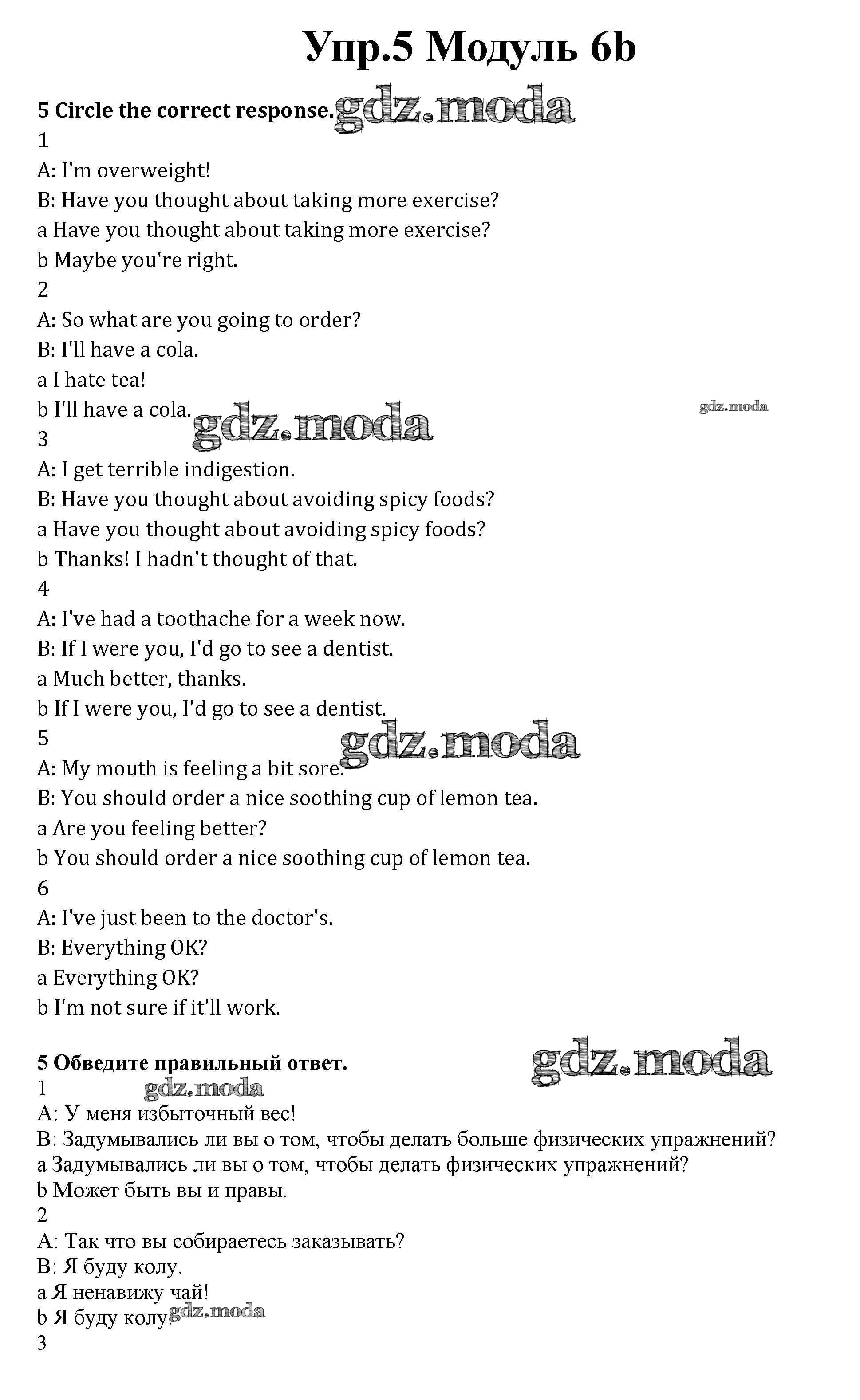 ГДЗ решение к заданию № 5 Английский язык 10 класс рабочая тетрадь Spotlight Афанасьева О.В. Просвещение 2015 Базовый уровень ФГОС бесплатно на гдз.мода!