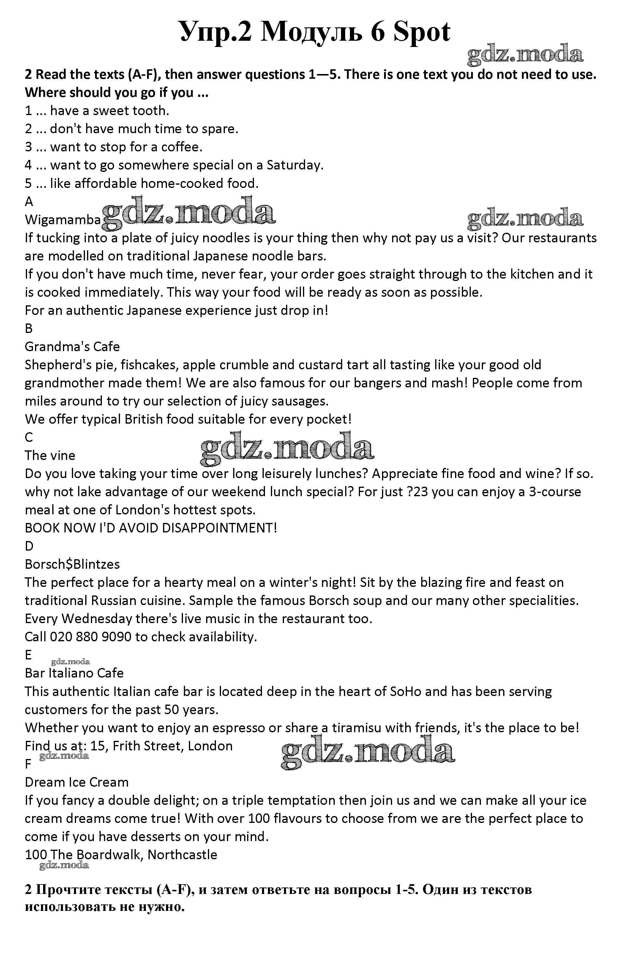 ГДЗ решение к заданию № 2 Английский язык 10 класс рабочая тетрадь Spotlight Афанасьева О.В. Просвещение 2015 Базовый уровень ФГОС бесплатно на гдз.мода!