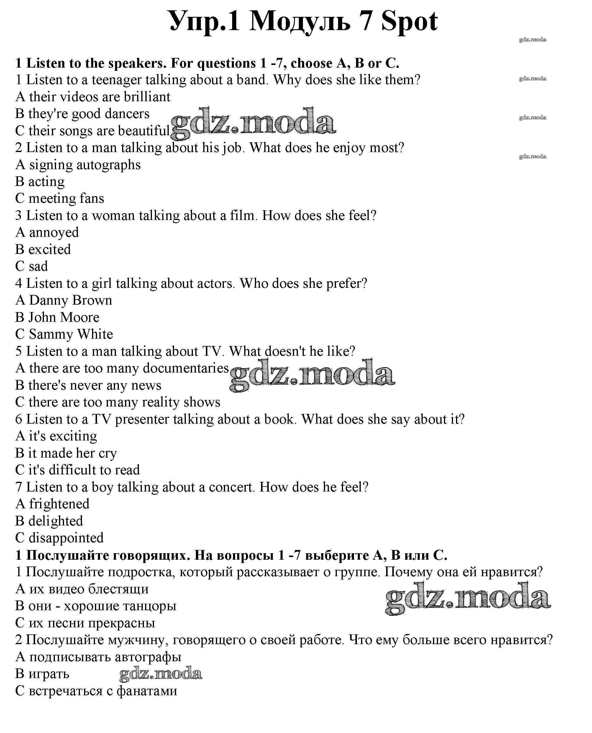ГДЗ решение к заданию № 1 Английский язык 10 класс рабочая тетрадь Spotlight Афанасьева О.В. Просвещение 2015 Базовый уровень ФГОС бесплатно на гдз.мода!