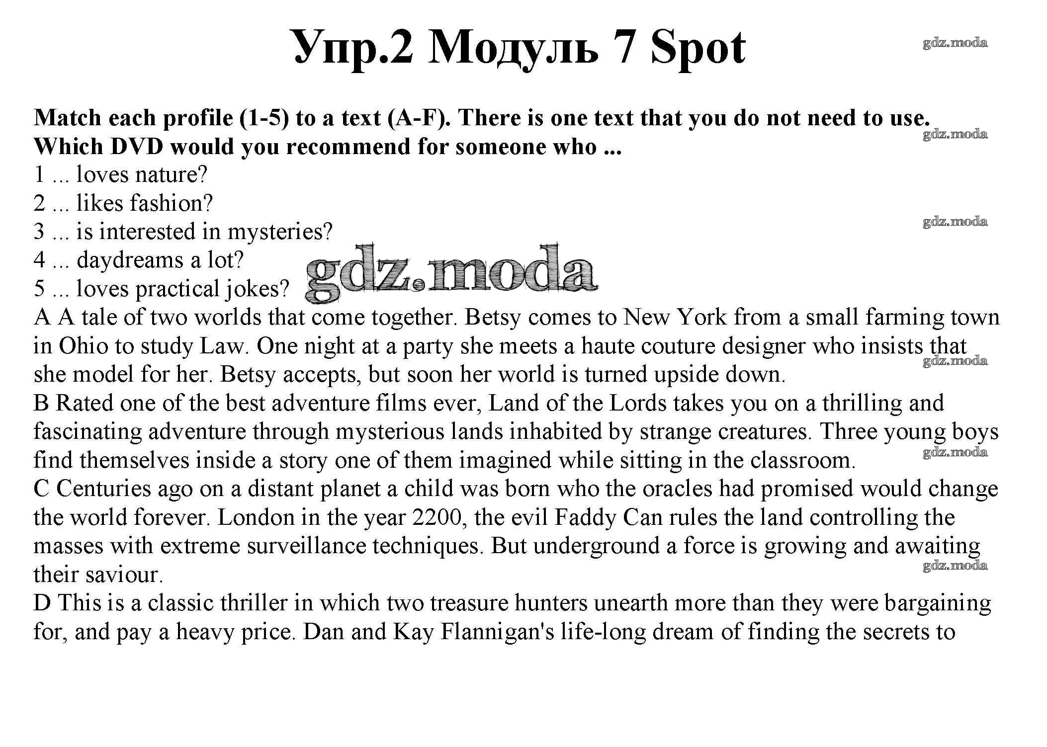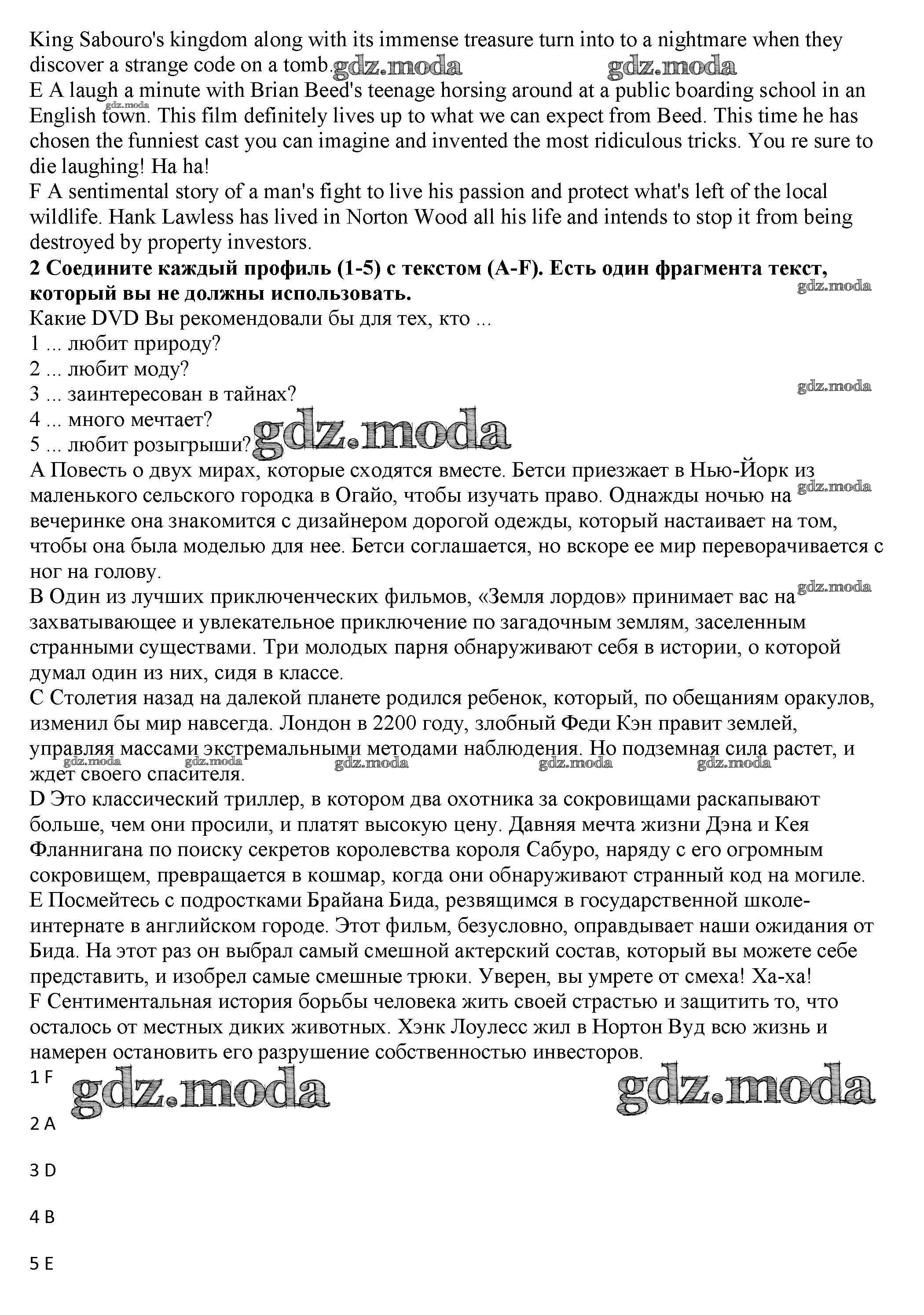 ГДЗ решение к заданию № 2 Английский язык 10 класс рабочая тетрадь Spotlight Афанасьева О.В. Просвещение 2015 Базовый уровень ФГОС бесплатно на гдз.мода!
