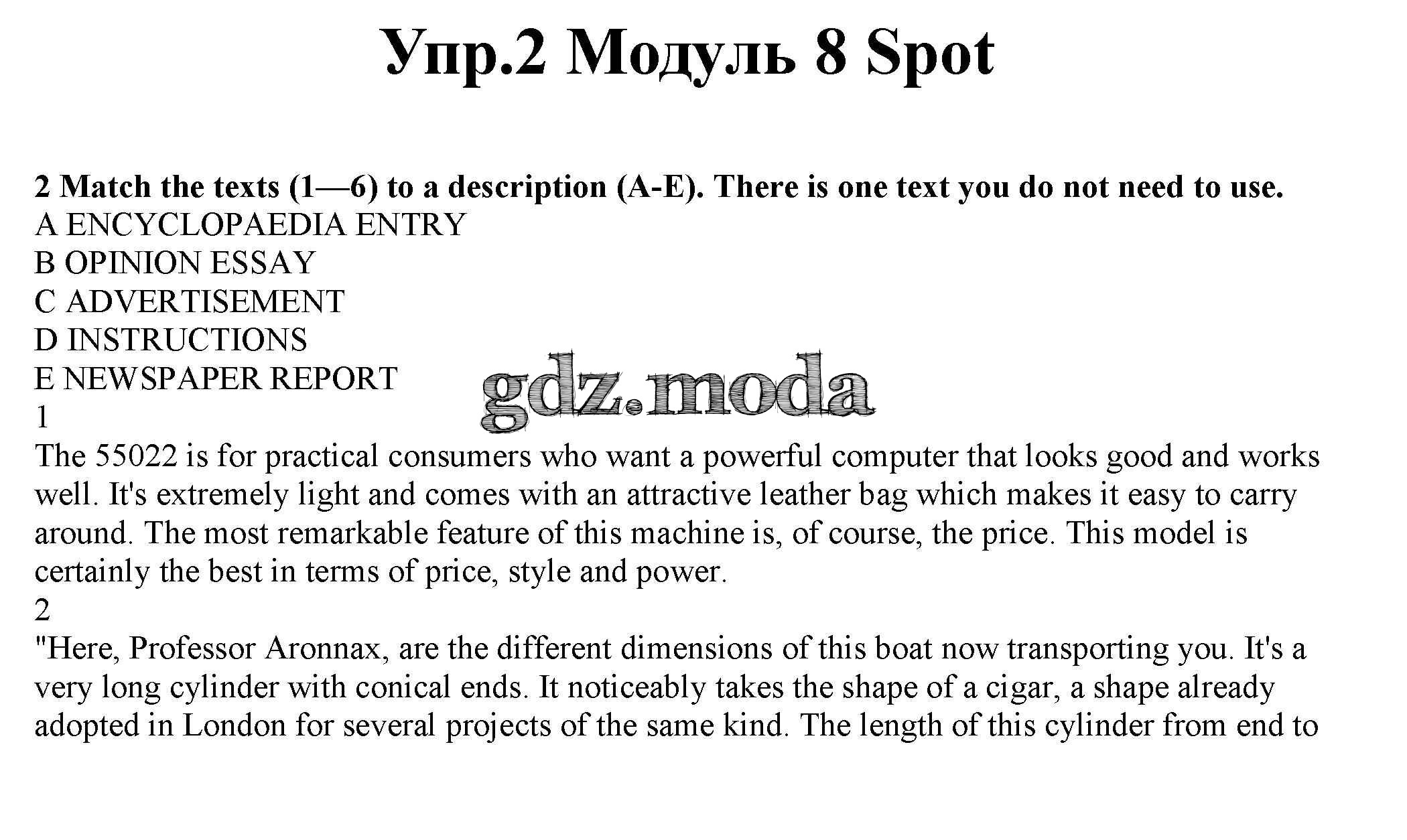 ГДЗ решение к заданию № 2 Английский язык 10 класс рабочая тетрадь Spotlight Афанасьева О.В. Просвещение 2015 Базовый уровень ФГОС бесплатно на гдз.мода!