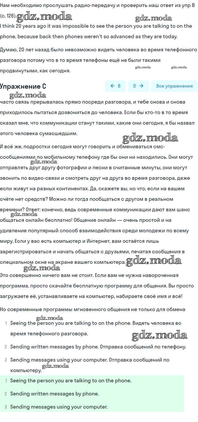 ГДЗ решение к заданию № 126 Английский язык 10 класс Комарова Ю.А. Русское слово 2018 Базовый уровень ФГОС бесплатно на гдз.мода!