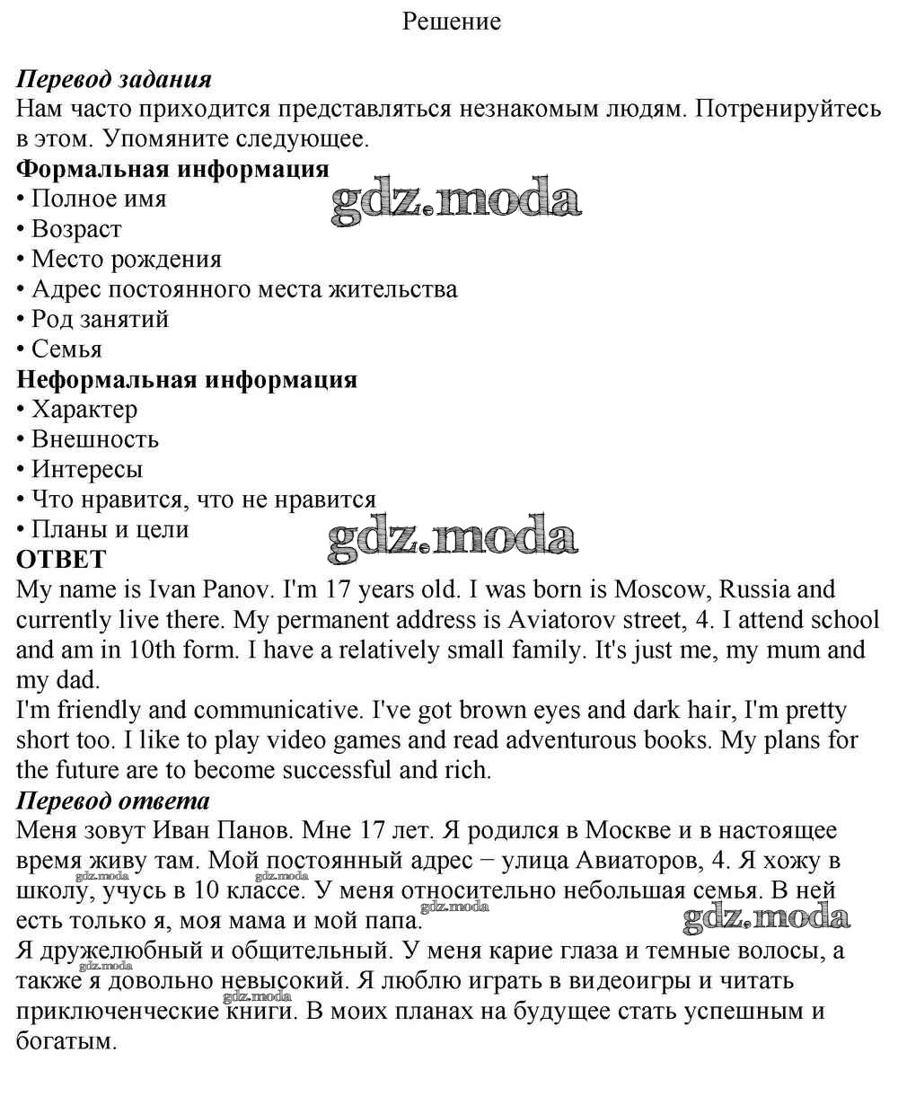 ОТВЕТ на задание № 1 Учебник по Английскому языку 10 класс Афанасьева Rainbow Базовый уровень