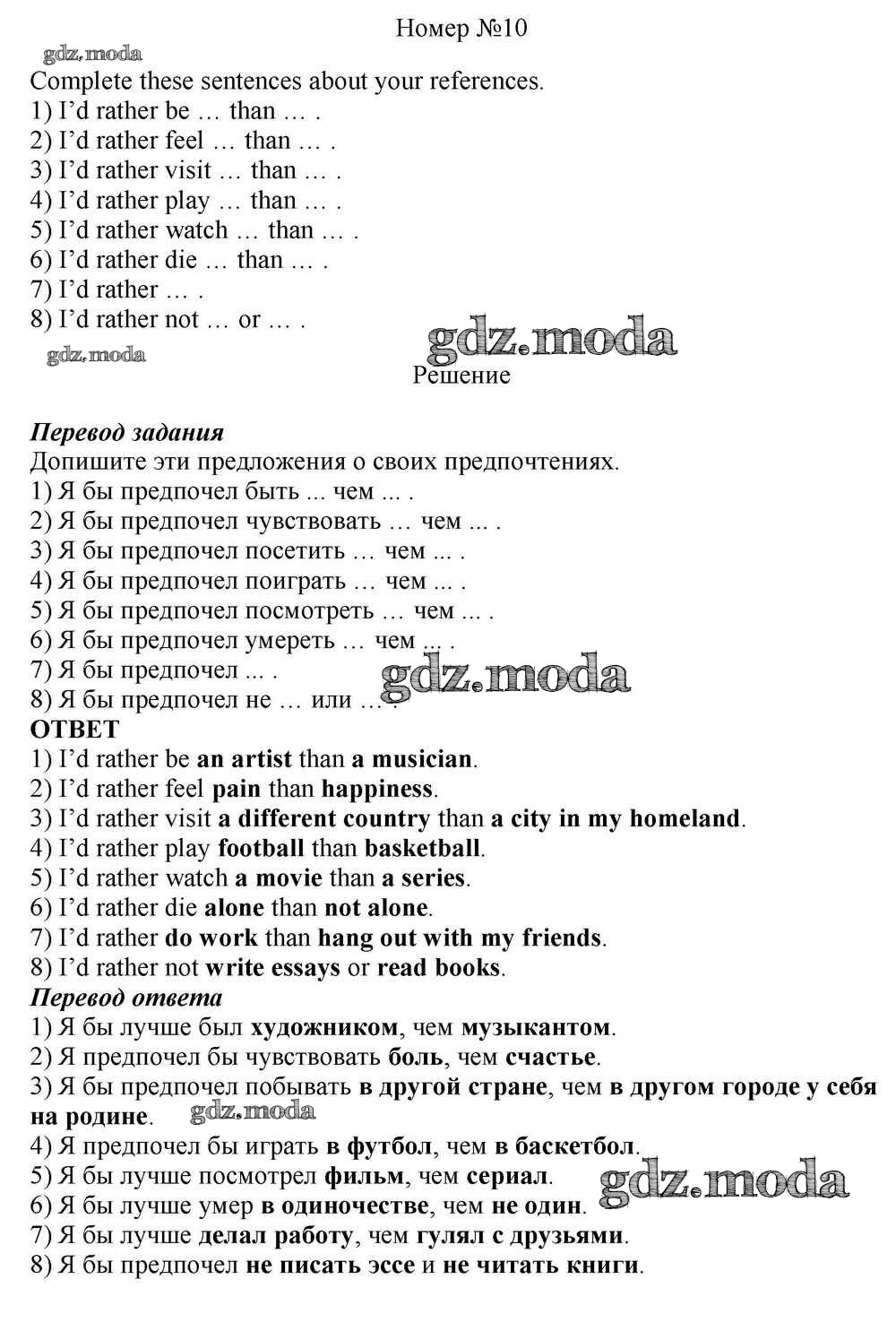 ОТВЕТ на задание № 10 Учебник по Английскому языку 10 класс Афанасьева Rainbow Базовый уровень