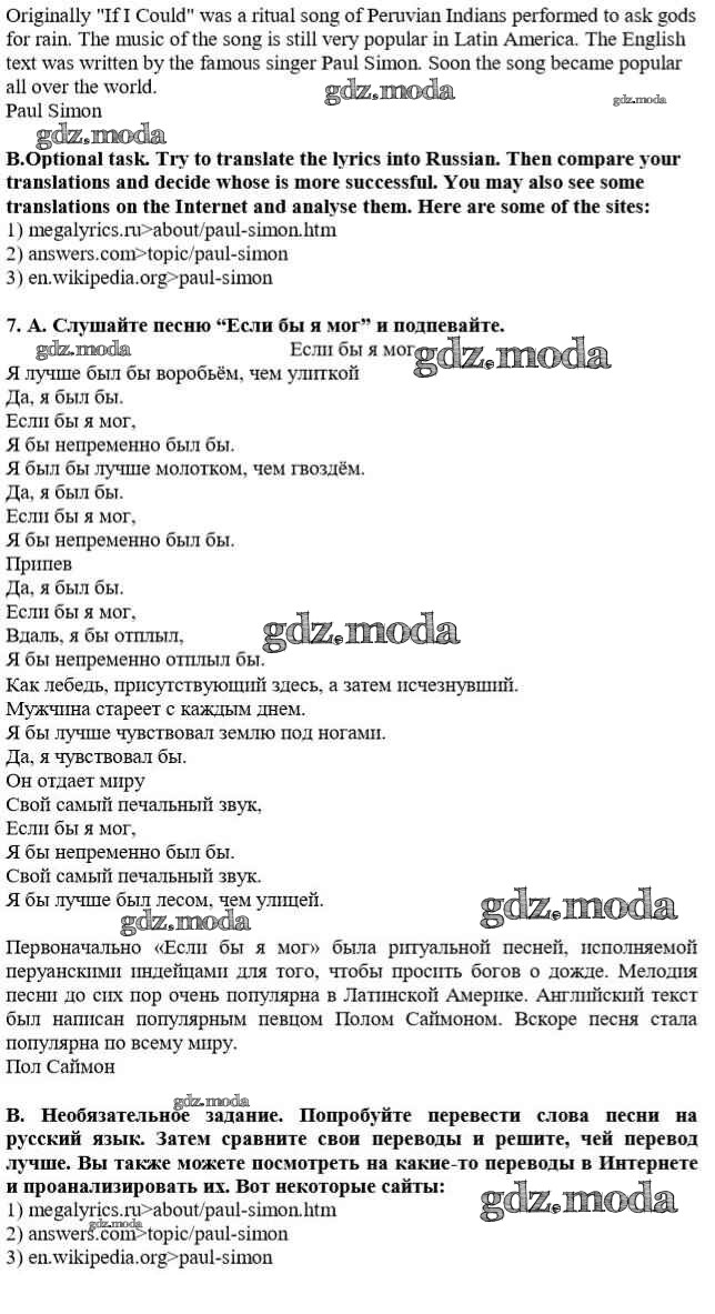 ОТВЕТ на задание № 7 Учебник по Английскому языку 10 класс Афанасьева Rainbow Базовый уровень