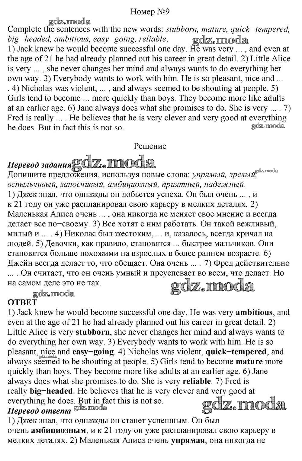 ОТВЕТ на задание № 9 Учебник по Английскому языку 10 класс Афанасьева Rainbow Базовый уровень