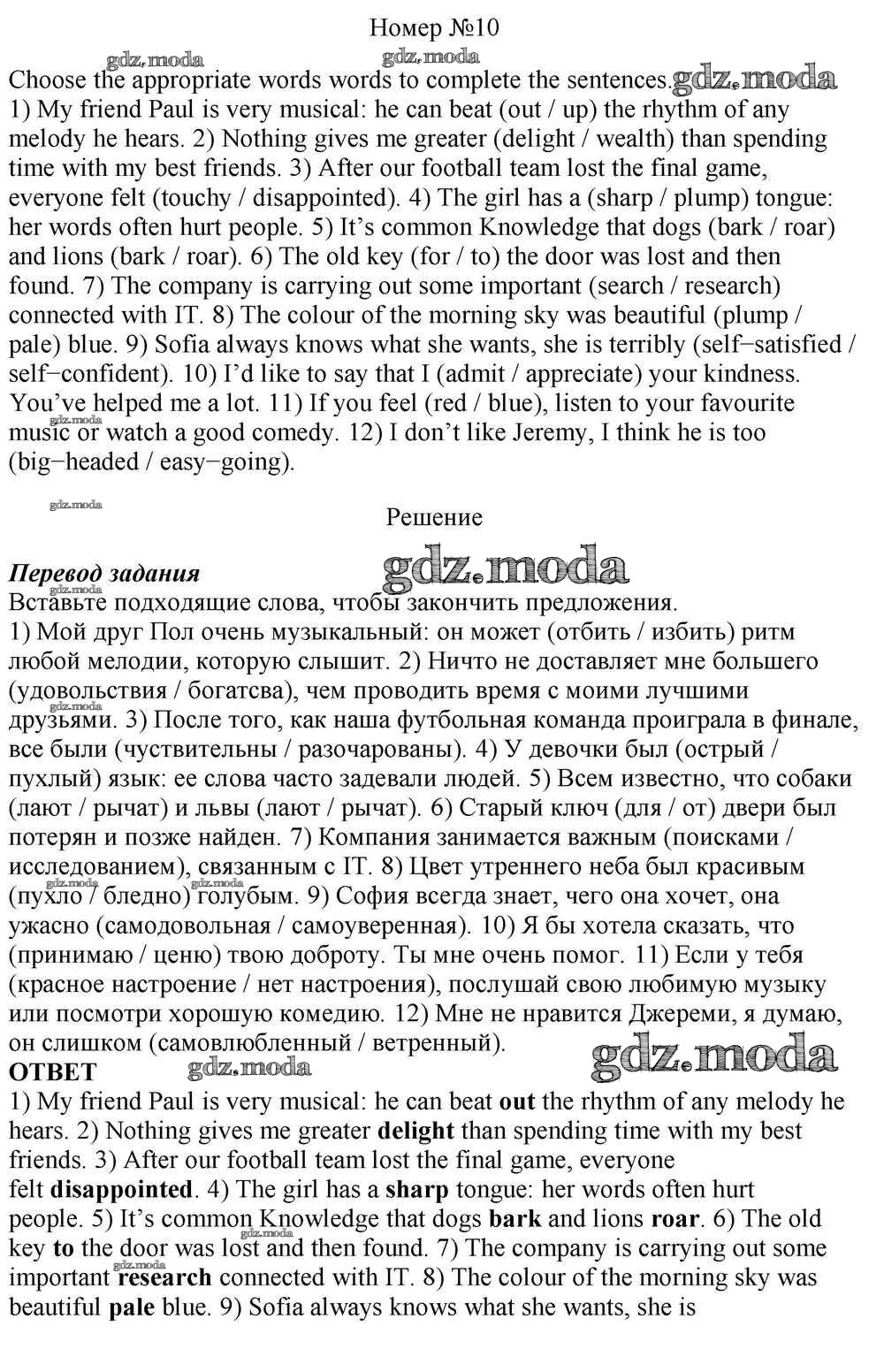 ОТВЕТ на задание № 10 Учебник по Английскому языку 10 класс Афанасьева Rainbow Базовый уровень
