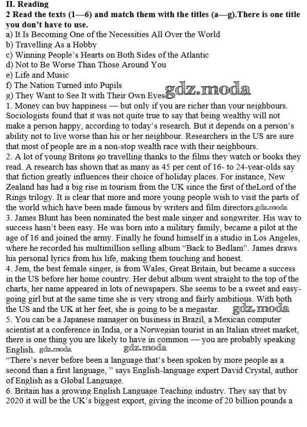ОТВЕТ на задание № 2 Учебник по Английскому языку 10 класс Афанасьева Rainbow Базовый уровень