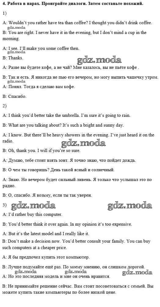 ОТВЕТ на задание № 4 Учебник по Английскому языку 10 класс Афанасьева Rainbow Базовый уровень