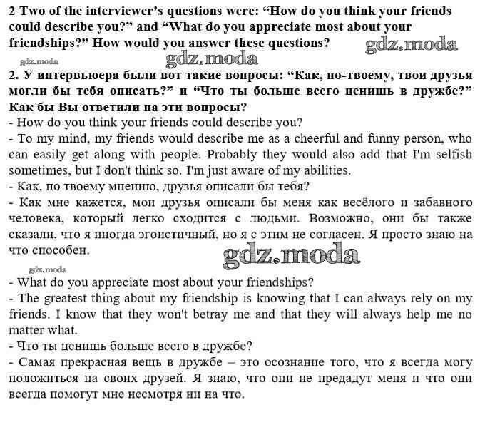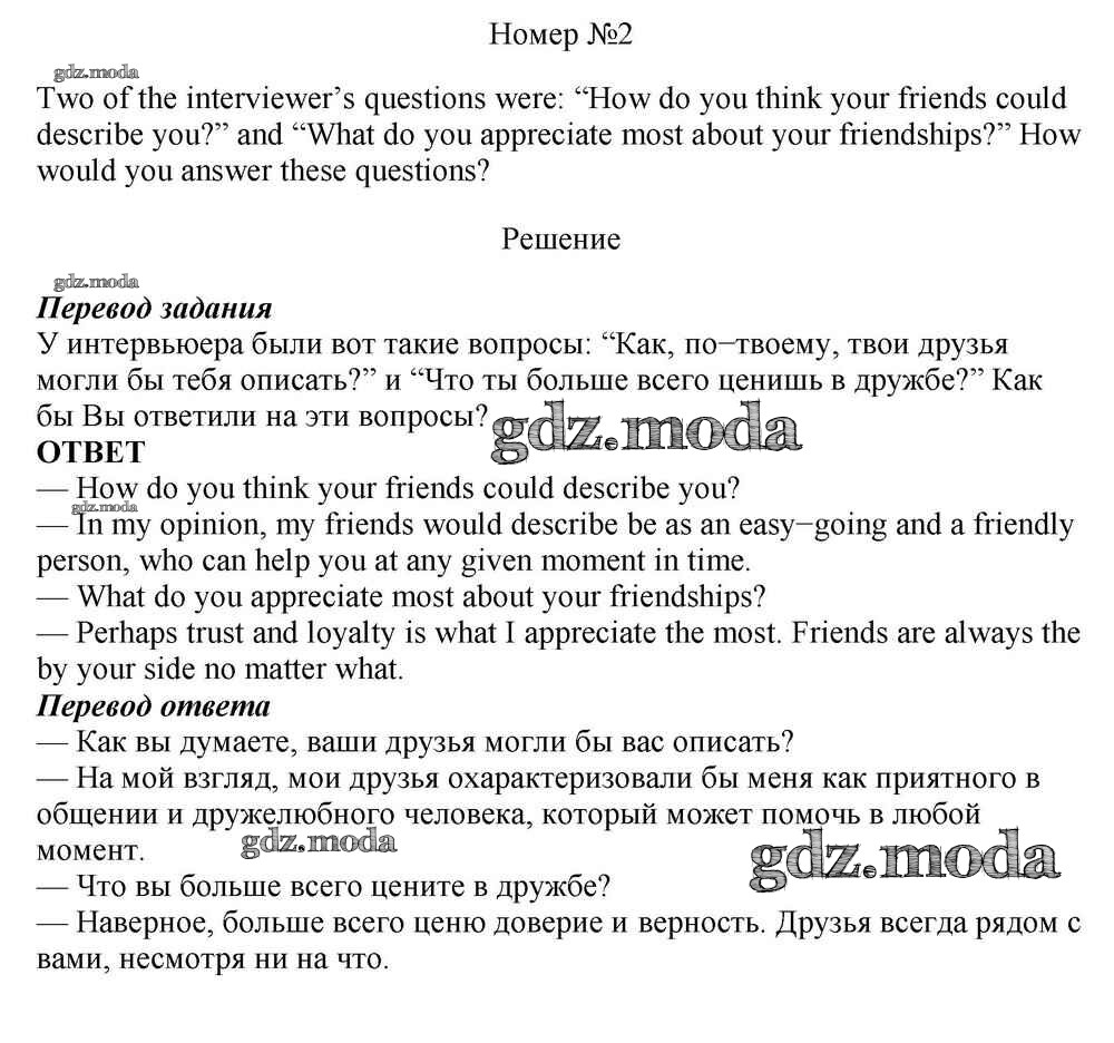 ОТВЕТ на задание № 2 Учебник по Английскому языку 10 класс Афанасьева Rainbow Базовый уровень