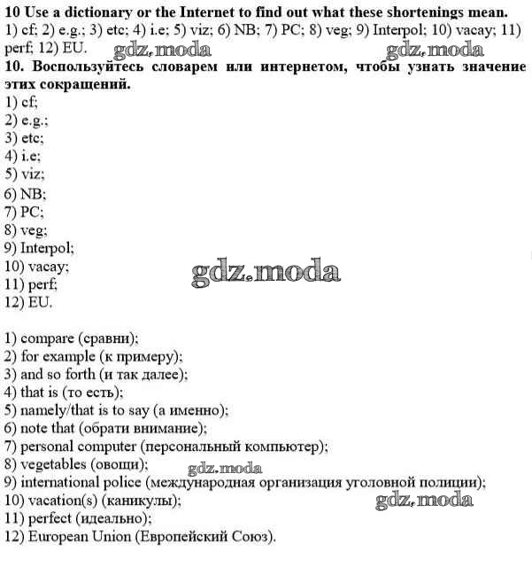 ОТВЕТ на задание № 10 Учебник по Английскому языку 10 класс Афанасьева Rainbow Базовый уровень