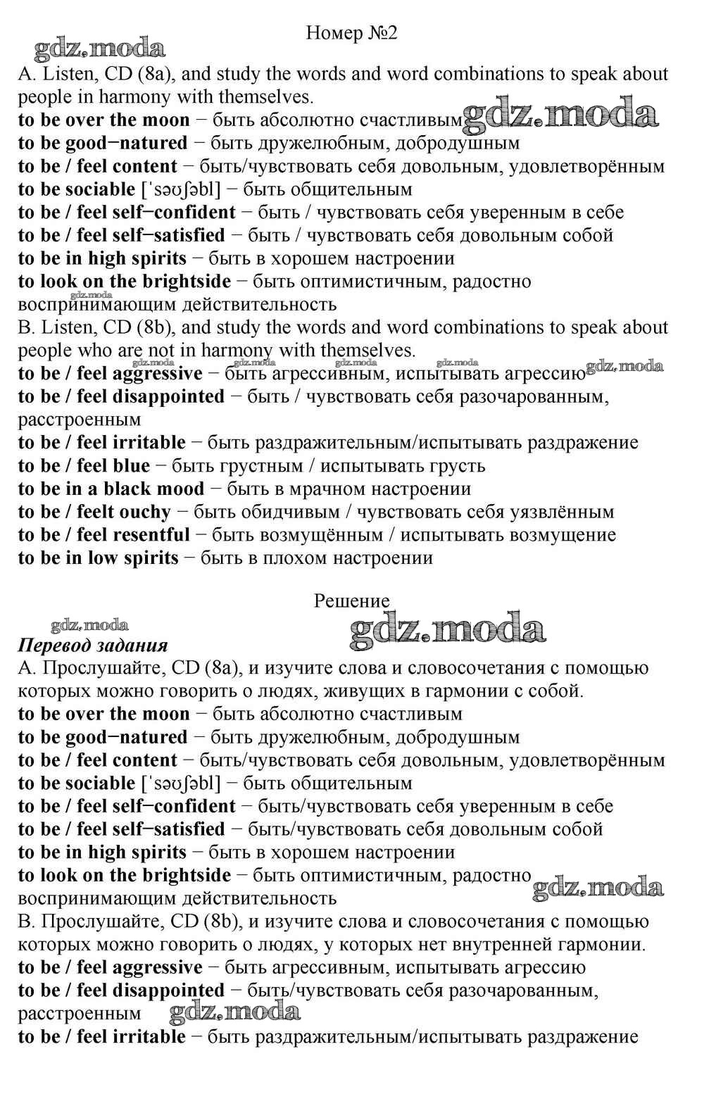 ОТВЕТ на задание № 2 Учебник по Английскому языку 10 класс Афанасьева Rainbow Базовый уровень