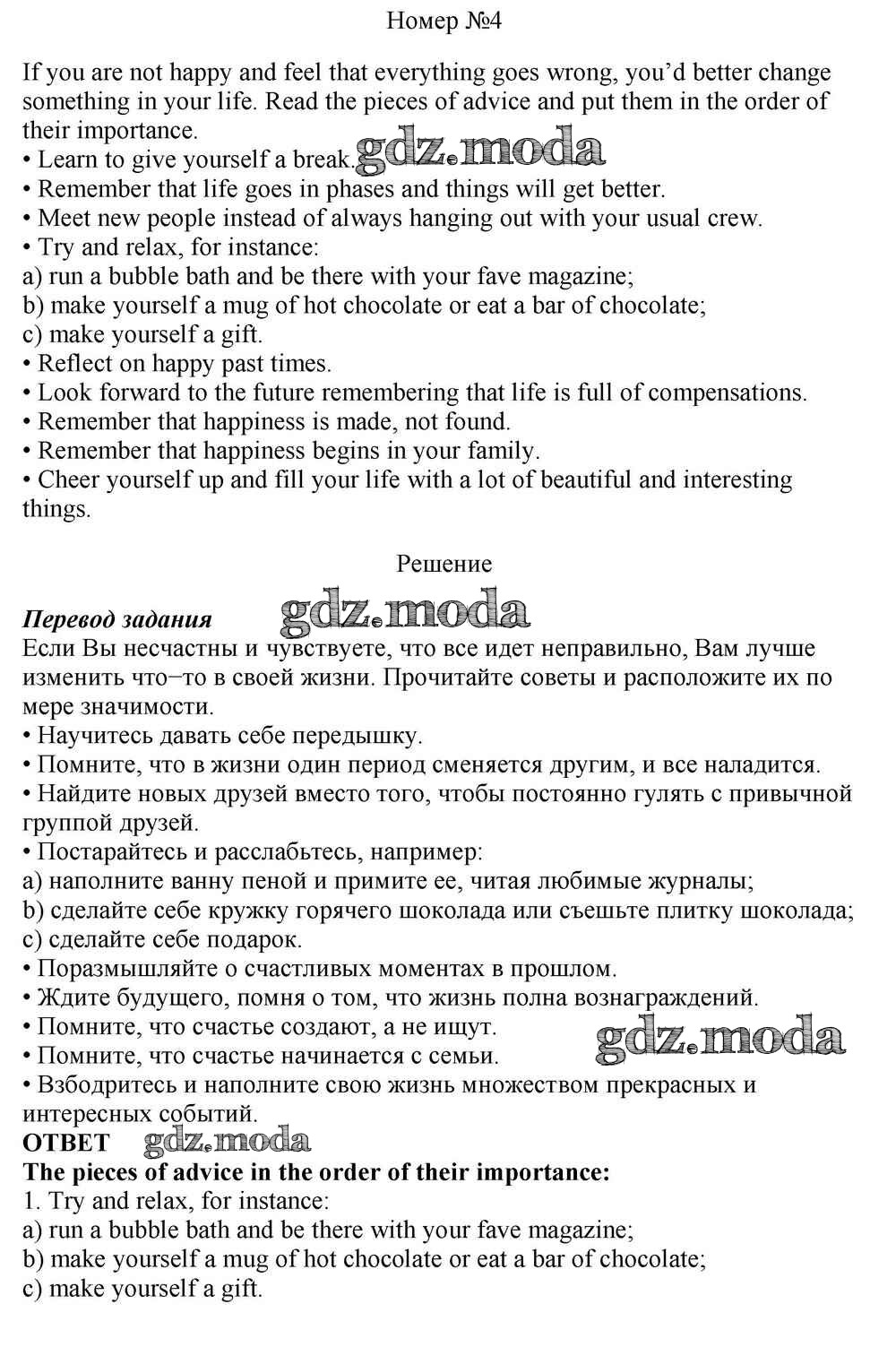 ОТВЕТ на задание № 4 Учебник по Английскому языку 10 класс Афанасьева Rainbow Базовый уровень