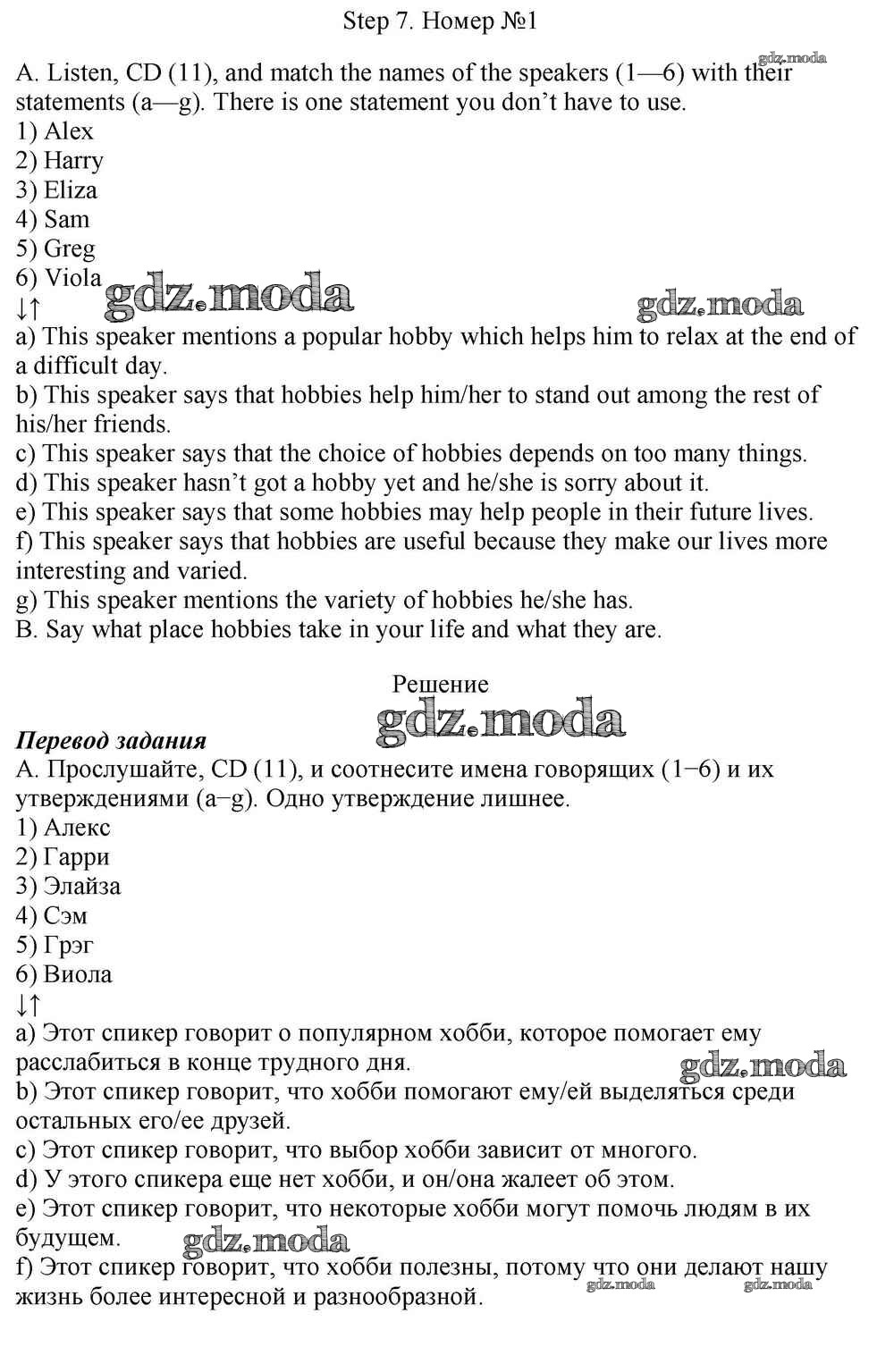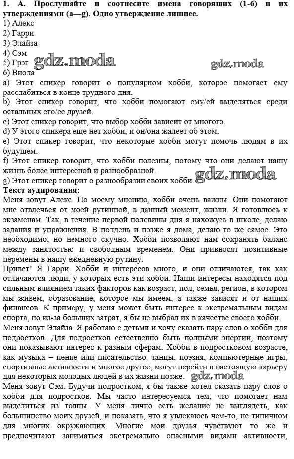 ОТВЕТ на задание № 1 Учебник по Английскому языку 10 класс Афанасьева Rainbow Базовый уровень