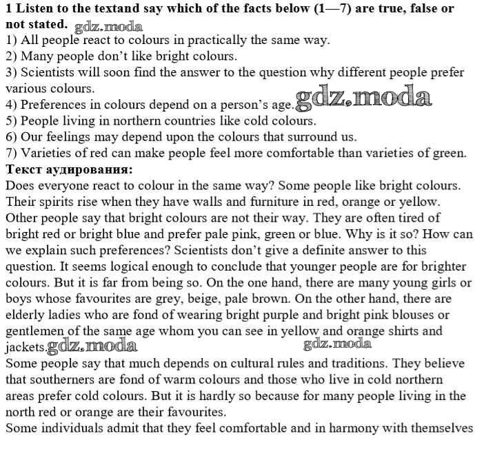 ОТВЕТ на задание № 1 Учебник по Английскому языку 10 класс Афанасьева Rainbow Базовый уровень