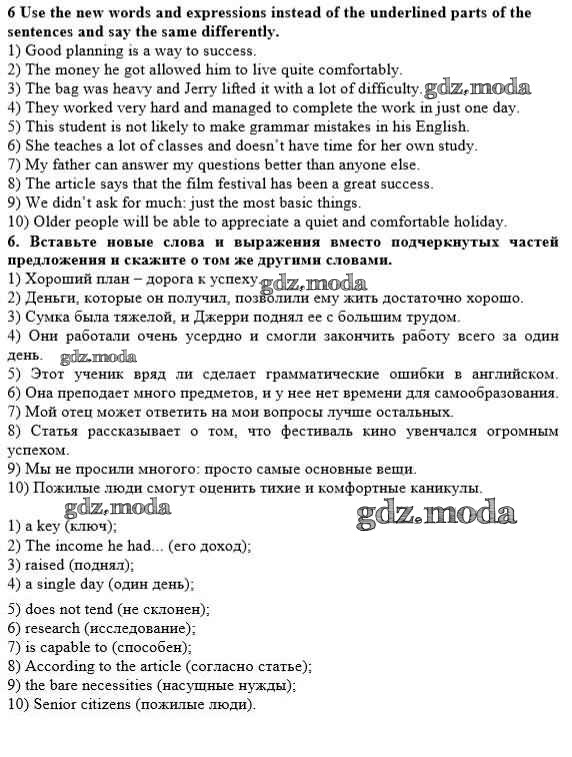 ОТВЕТ на задание № 6 Учебник по Английскому языку 10 класс Афанасьева Rainbow Базовый уровень