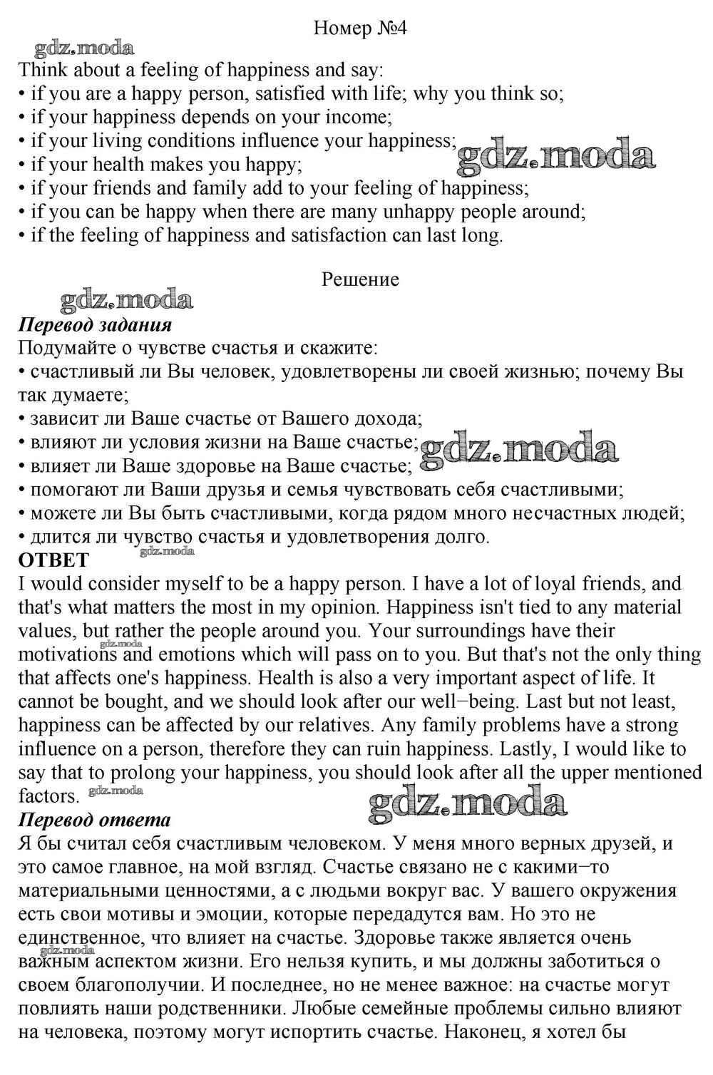 ОТВЕТ на задание № 4 Учебник по Английскому языку 10 класс Афанасьева Rainbow Базовый уровень