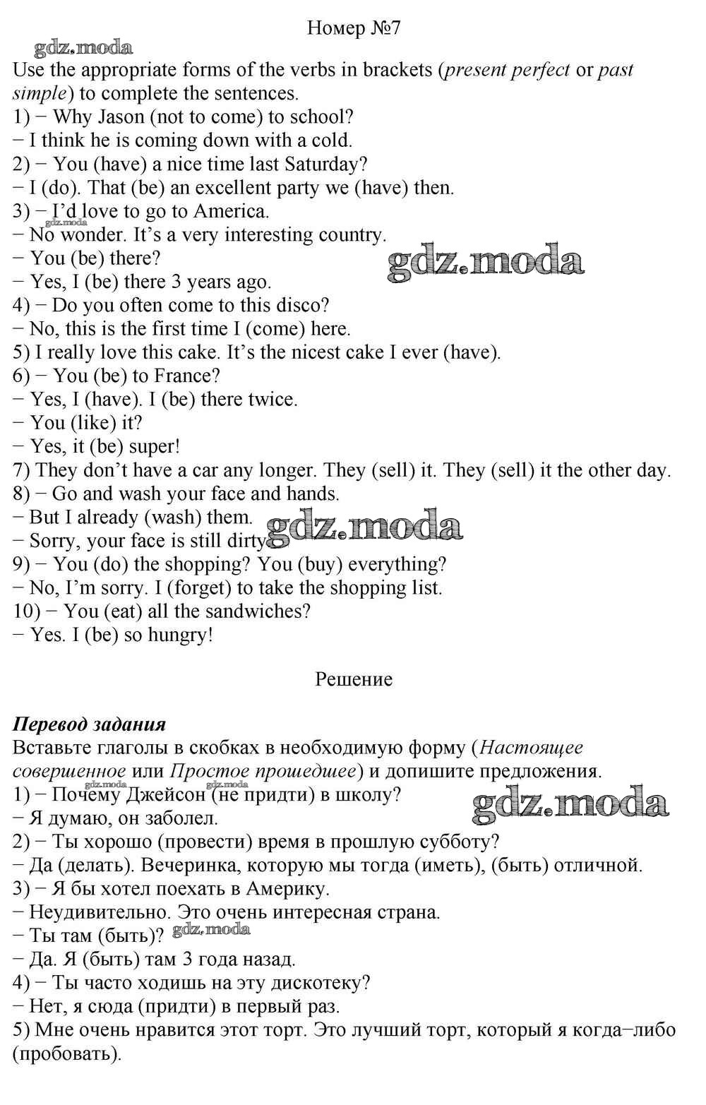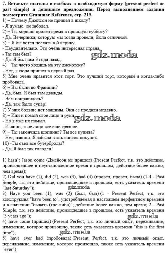 ОТВЕТ на задание № 7 Учебник по Английскому языку 10 класс Афанасьева Rainbow Базовый уровень