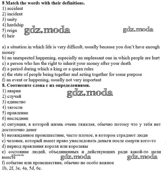 ОТВЕТ на задание № 8 Учебник по Английскому языку 10 класс Афанасьева Rainbow Базовый уровень