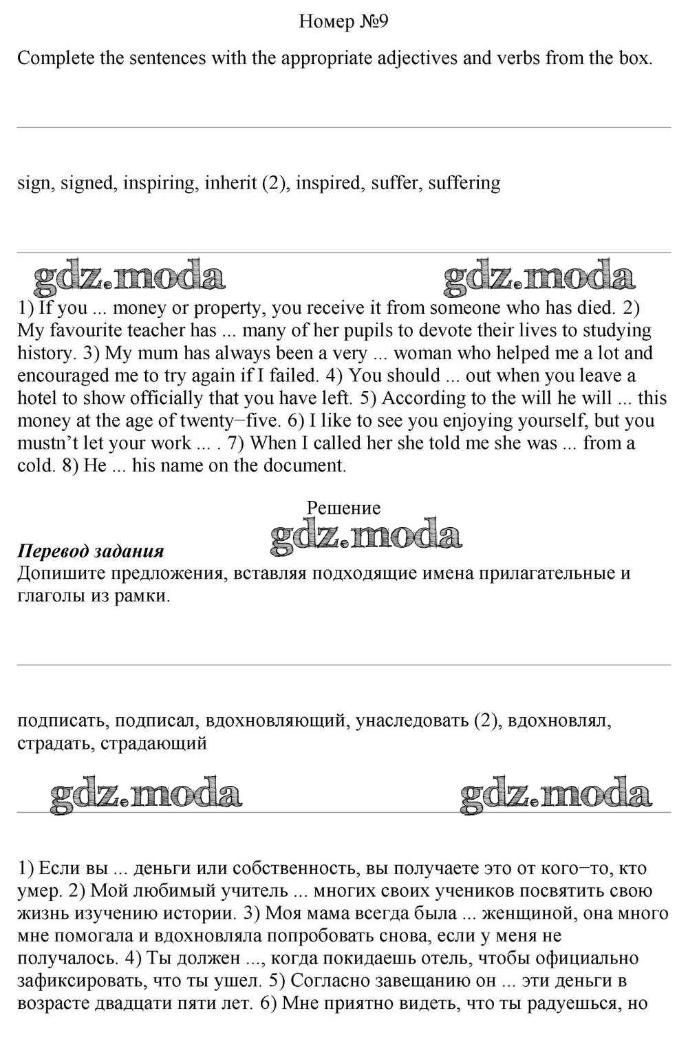 ОТВЕТ на задание № 9 Учебник по Английскому языку 10 класс Афанасьева Rainbow Базовый уровень