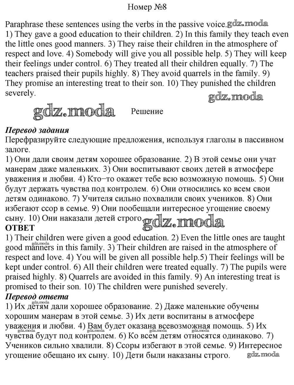 ОТВЕТ на задание № 8 Учебник по Английскому языку 10 класс Афанасьева Rainbow Базовый уровень