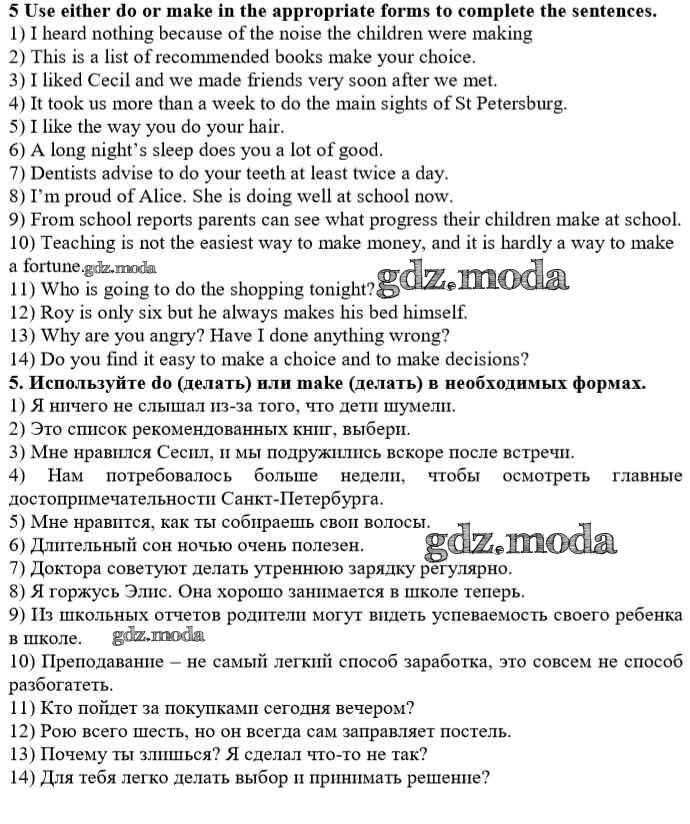 ОТВЕТ на задание № 5 Учебник по Английскому языку 10 класс Афанасьева Rainbow Базовый уровень