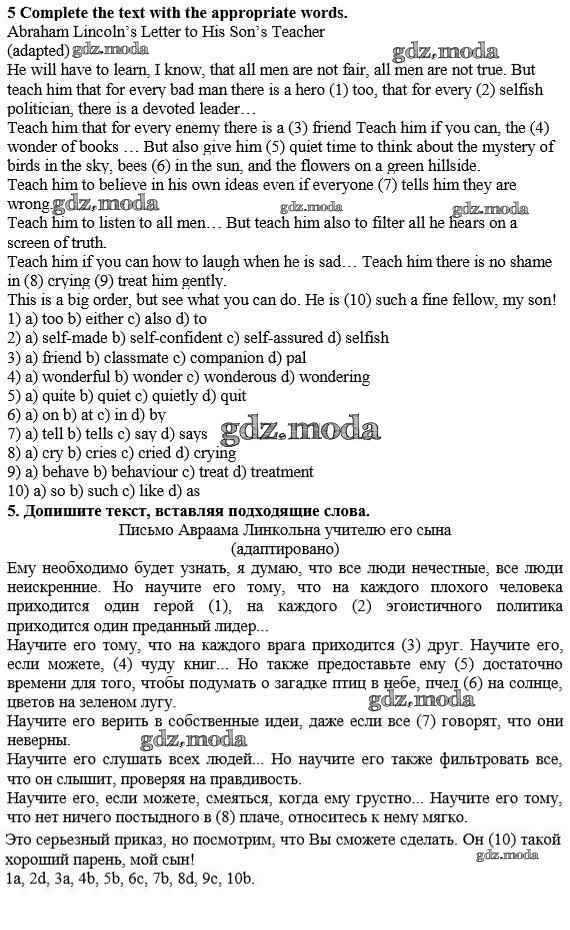 ОТВЕТ на задание № 5 Учебник по Английскому языку 10 класс Афанасьева Rainbow Базовый уровень