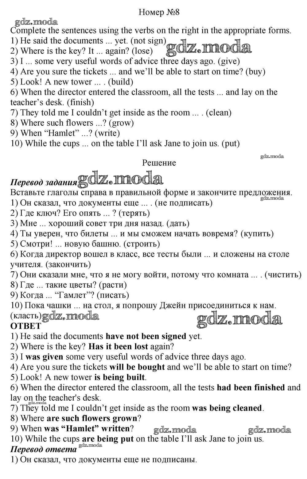 ОТВЕТ на задание № 8 Учебник по Английскому языку 10 класс Афанасьева Rainbow Базовый уровень