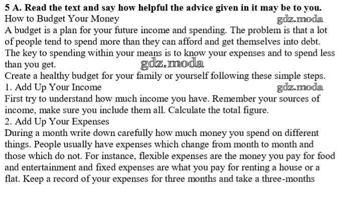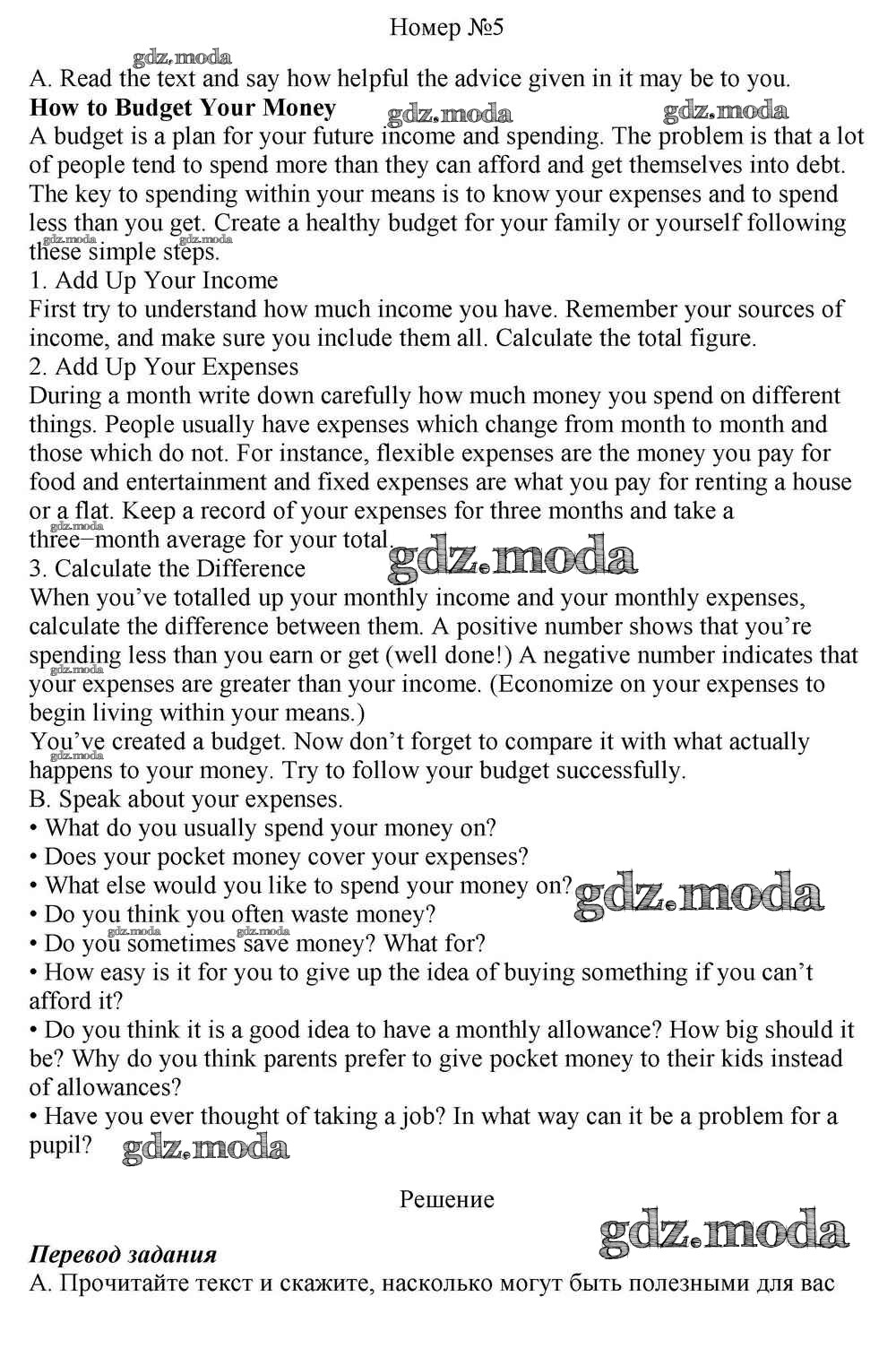 ОТВЕТ на задание № 5 Учебник по Английскому языку 10 класс Афанасьева Rainbow Базовый уровень