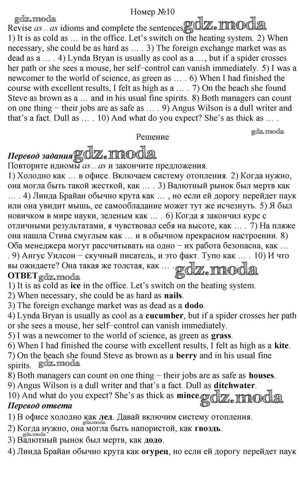 ОТВЕТ на задание № 10 Учебник по Английскому языку 10 класс Афанасьева Rainbow Базовый уровень