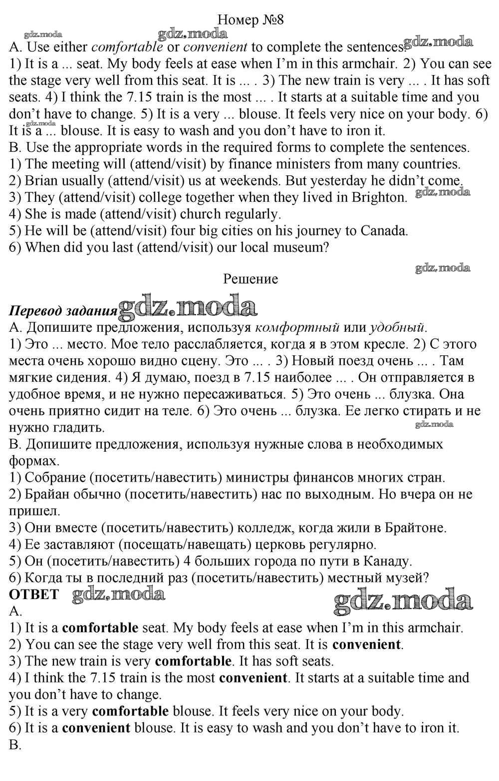 ОТВЕТ на задание № 8 Учебник по Английскому языку 10 класс Афанасьева Rainbow Базовый уровень