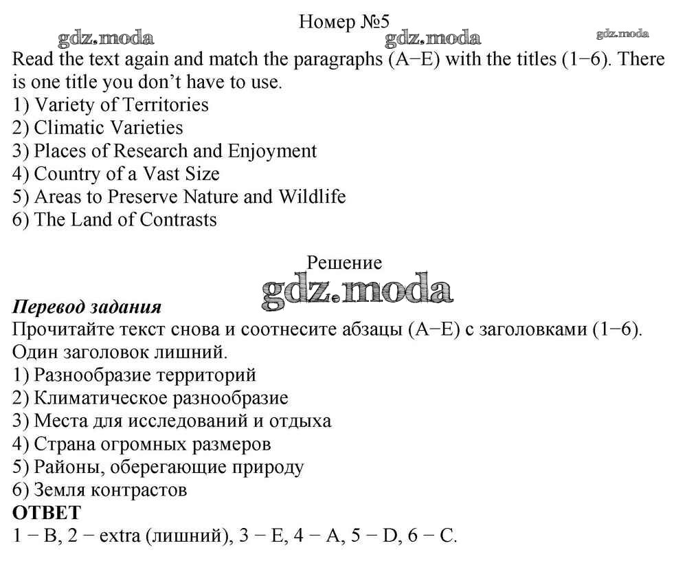ОТВЕТ на задание № 5 Учебник по Английскому языку 10 класс Афанасьева Rainbow Базовый уровень