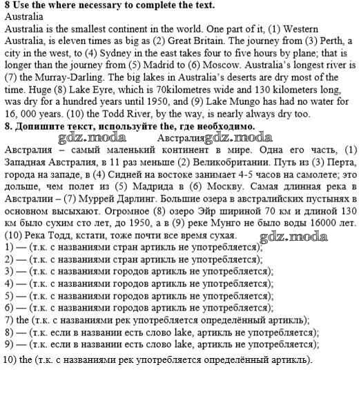 ОТВЕТ на задание № 8 Учебник по Английскому языку 10 класс Афанасьева Rainbow Базовый уровень